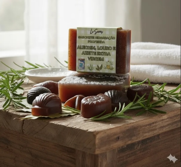 A adição de alecrim, louro em pó, extrato de barbatimão, extrato de aloe vera, sal mineral e azeite extra virgem em sabonetes artesanais traz benefícios como ação cicatrizante, anti-inflamatória e adstringente (do barbatimão), hidratação e regeneração celular (aloe vera), estimulação da circulação e propriedades antioxidantes (alecrim e louro), e nutrição profunda e proteção (azeite), resultando em um sabonete que limpa, trata e cuida da pele de forma mais completa,