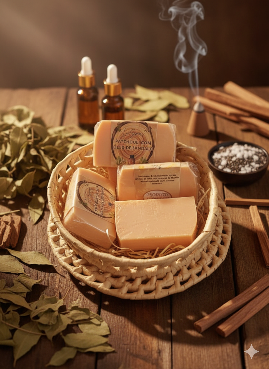 Experimente a limpeza profunda e calmante com o Sabonete de Patchouli com Óleo de Sândalo.